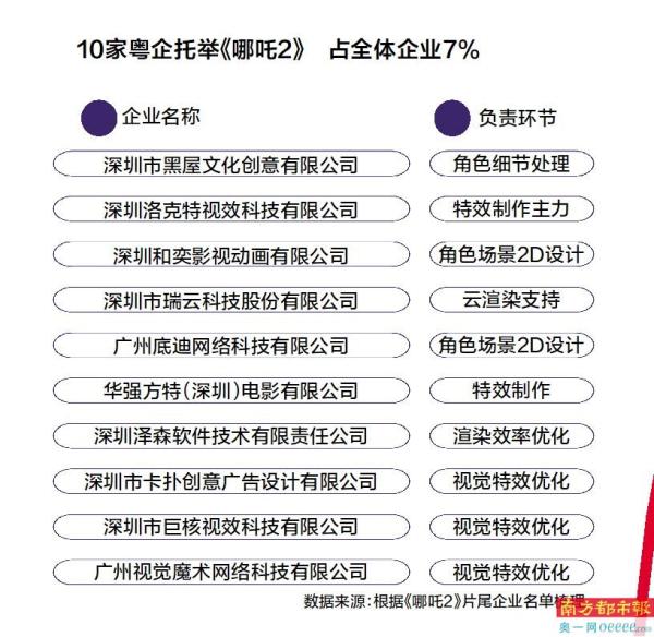 《哪吒2》中,无论是影片制作,还是周边产品,都有粤企身影。细数参与《哪吒2》制作、出现在影片片尾的130多家动画公司,除了20家来自核心制作地成都外,其他均为跨地域协作企业,其中有10家企业来自广东,参与角色设计、视效制作、渲染等环节。
