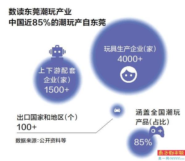 东莞潮玩产业起步于改革开放初期,现拥有超过4000家玩具生产企业、近1500家上下游配套企业,是全国最大的玩具出口基地;全球动漫衍生品1/4在东莞生产,全球每3个潮玩就有1个“东莞造”,中国近85%的潮玩产自东莞,Toycity、LAMTOYS、COME4ARTS、拼酷、摩动核等一系列潮玩品牌均出自东莞。