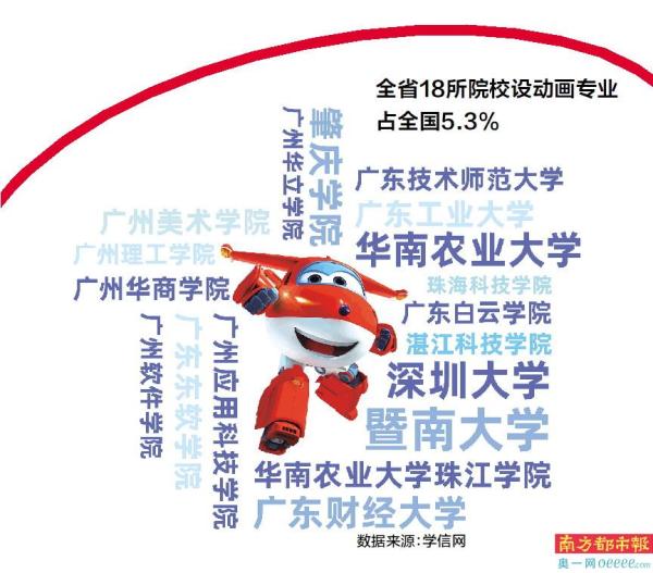 在全国动漫产业版图中,广东正以扎实的人才储备构筑硬实力“护城河”。学信网数据显示,全国342所开设动画专业的高校中,广东占18所,占比约5.3%,数量位居全国前列。从老牌艺术殿堂到新兴理工强校,多元化的院校布局为产业输送着复合型创新力量。