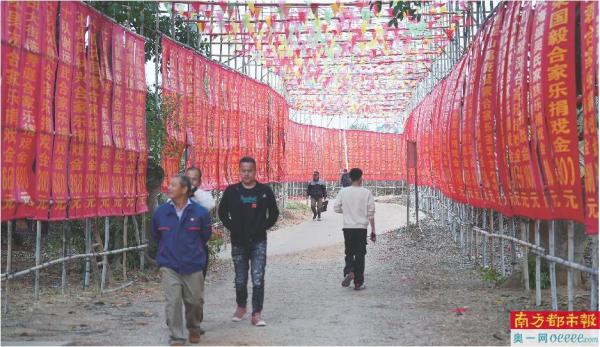 英罗村演出现场的乐捐戏金长廊。