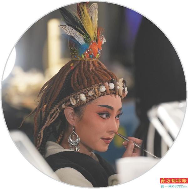 广东粤剧院一团演员在春班演出后台化妆。