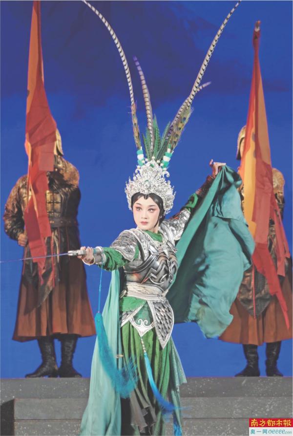 粤剧《谯国夫人》在广西合浦山口镇英罗村东屯圣庙前的戏棚里上演。广东粤剧院院长曾小敏饰演女主角冼英。 广东粤剧院供图