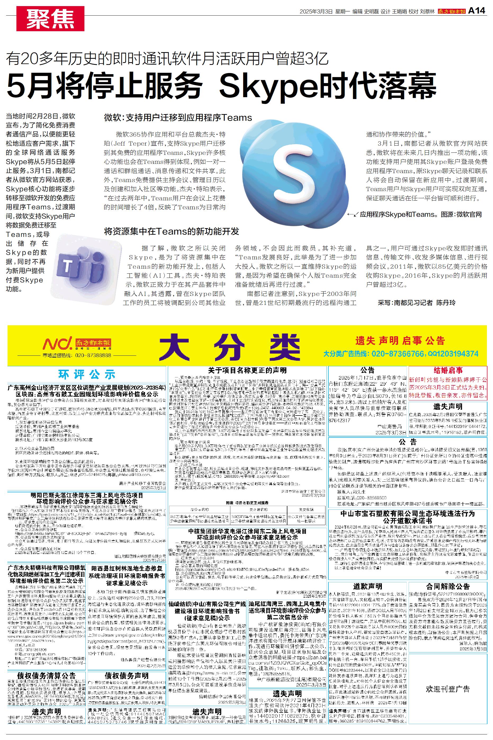 当地时间2月28日,微软宣布,为了简化免费消费者通信产品,以便能更轻松地适应客户需求,旗下的全球网络通话服务Skype将从5月5日起停止服务。
