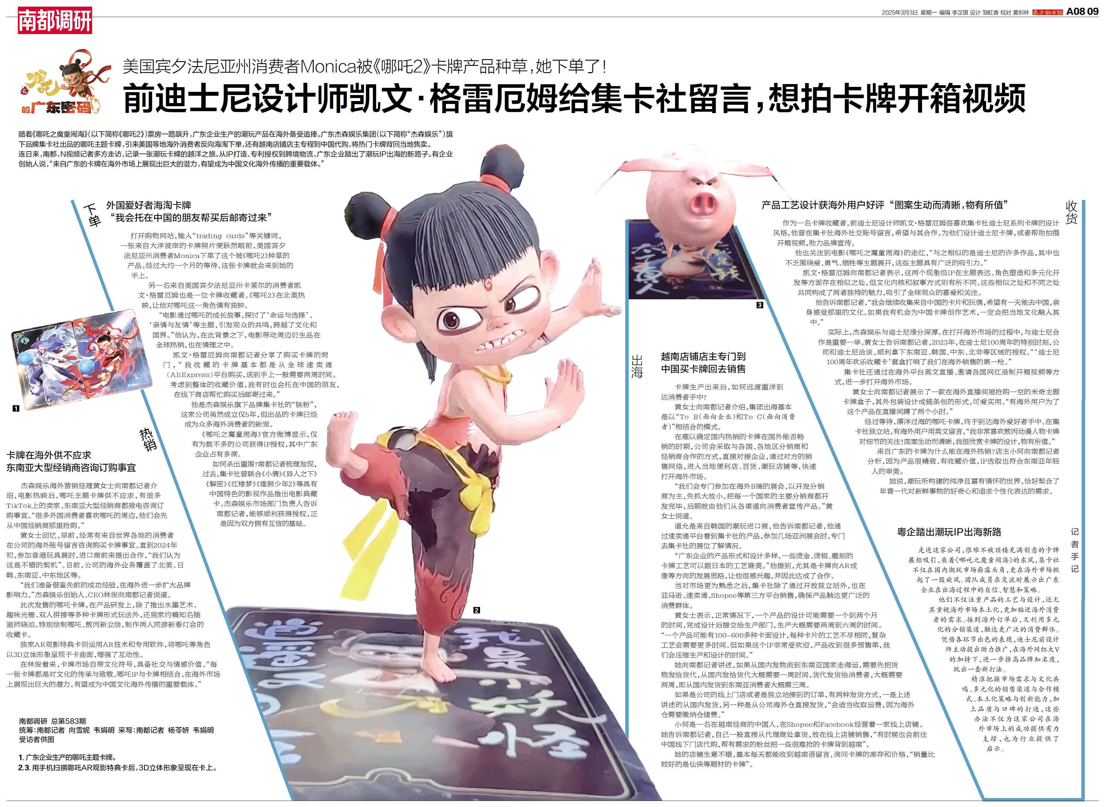 随着《哪吒之魔童闹海》(以下简称《哪吒2》)票房一路飙升,广东企业生产的潮玩产品在海外备受追捧。