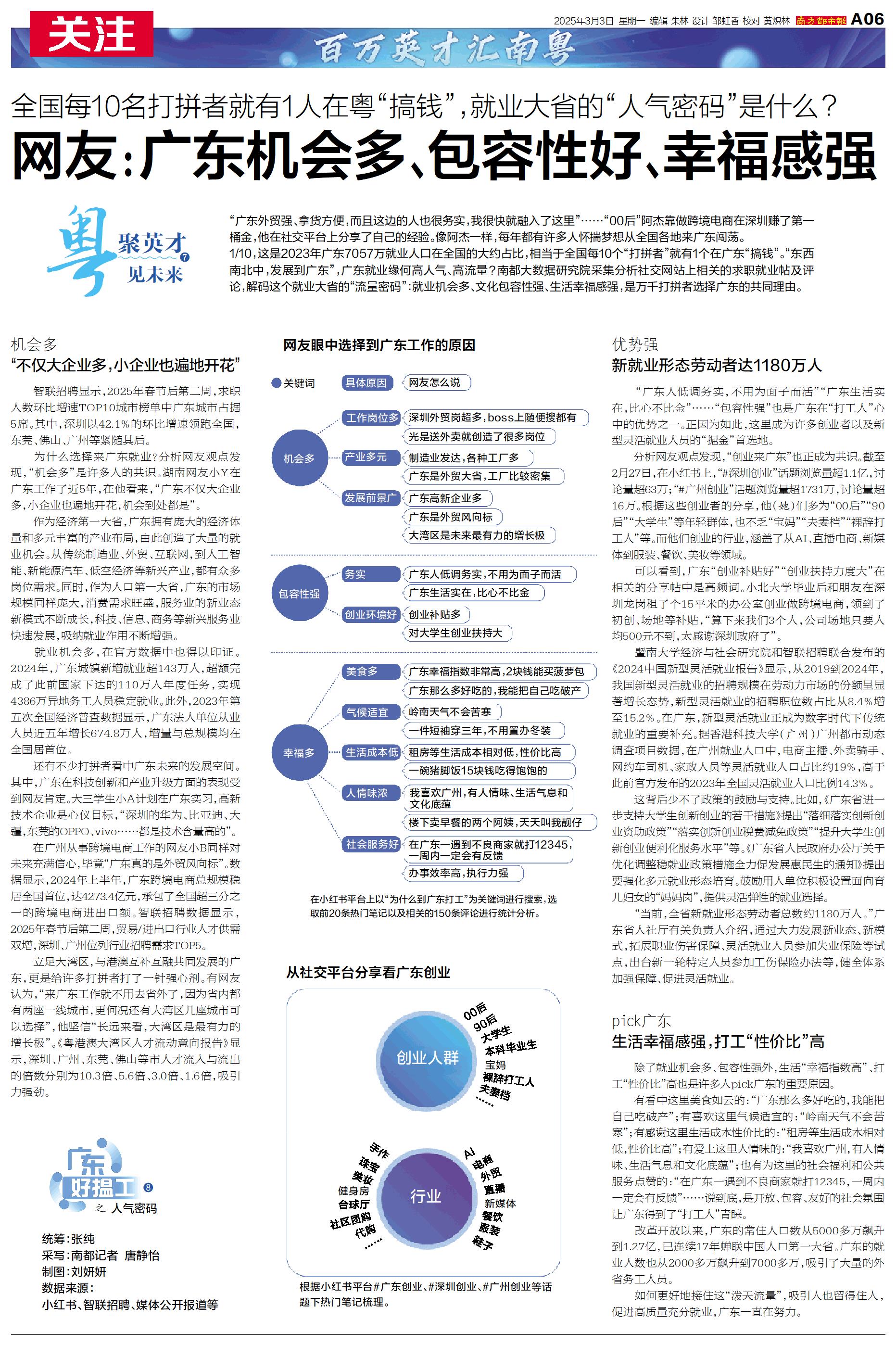 网友:广东机会多、包容性好、幸福感强