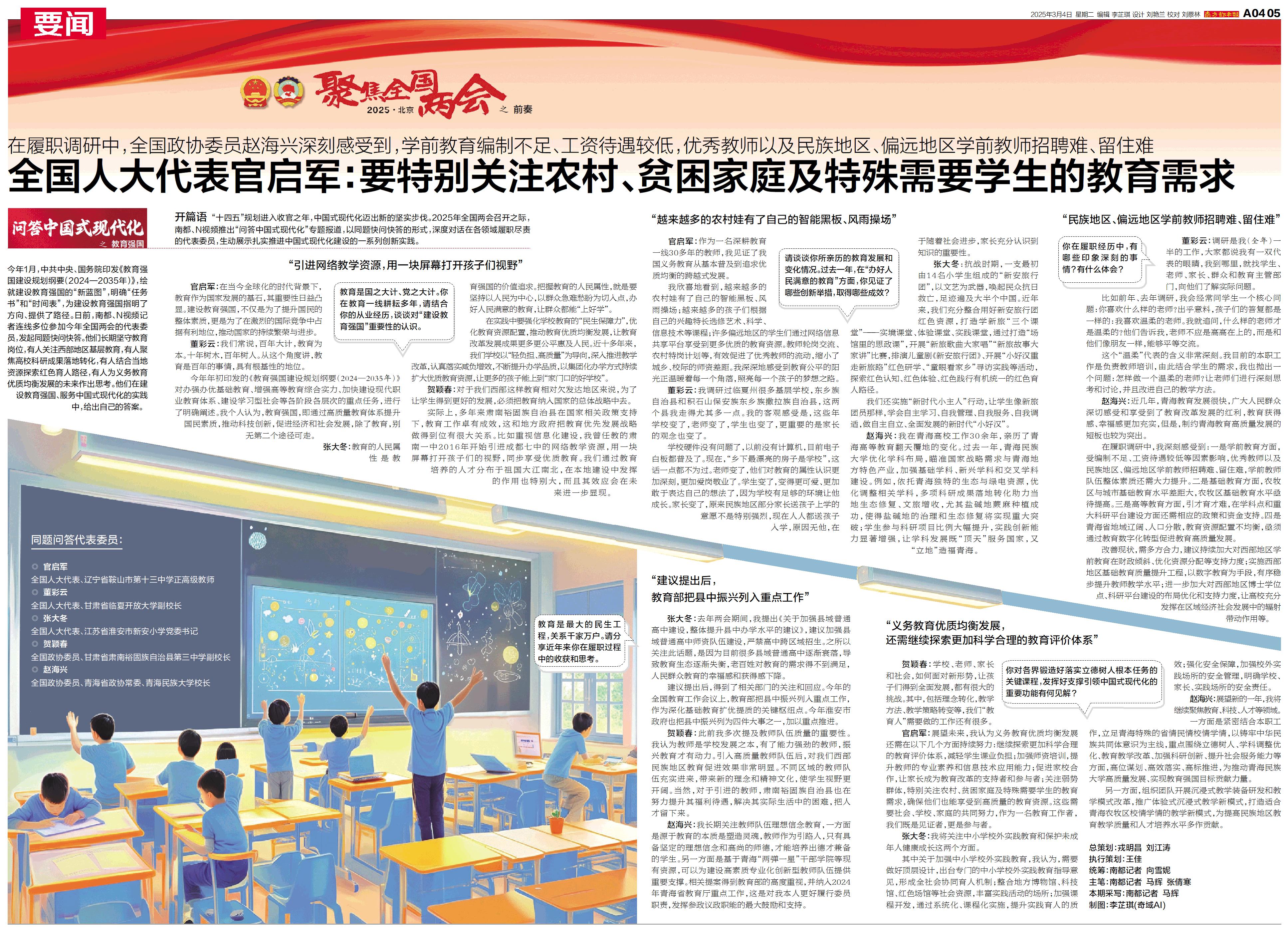 全国人大代表官启军:要特别关注农村、贫困家庭及特殊需要学生的教育需求