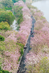广州海珠国家湿地公园宫粉紫荆将迎来最佳观赏期。
