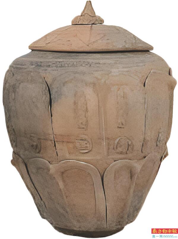 陶莲瓣纹盖罐