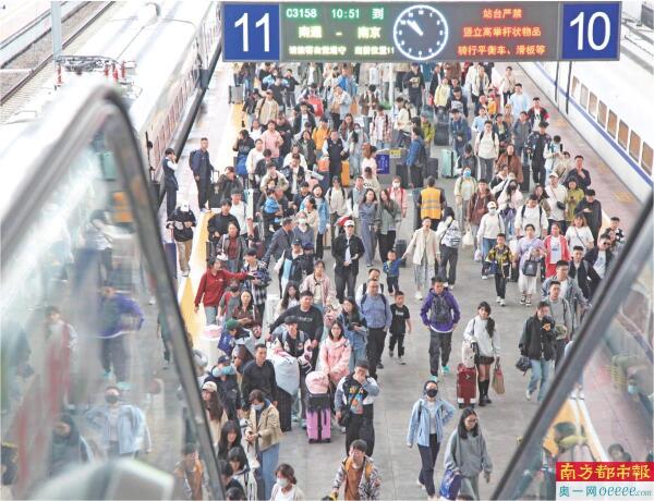 2024年10月6日,刚下车的旅客在江苏南京火车站准备出站。尽管多地强调错峰出行,但节假日集中出游占主导,景区超载、服务质量下降。 新华社发