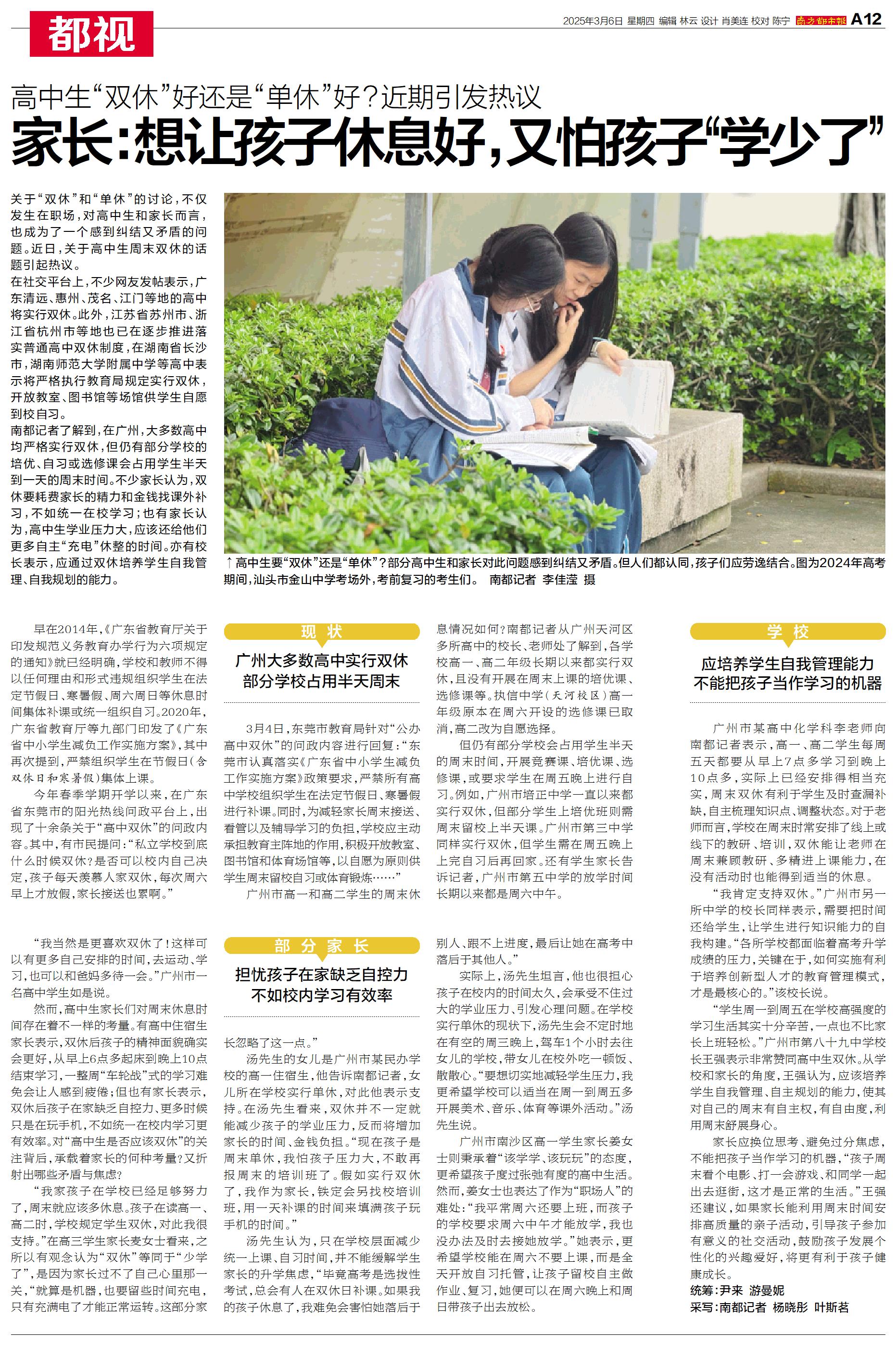 关于“双休”和“单休”的讨论,不仅发生在职场,对高中生和家长而言,也成为了一个感到纠结又矛盾的问题。近日,关于高中生周末双休的话题引起热议。