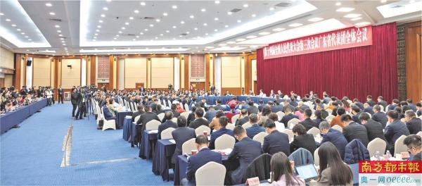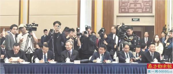 南都讯 南方日报记者徐林 骆骁骅 李凤祥 3月6日下午,十四届全国人大三次会议广东省代表团在住地举行全体会议,继续审议政府工作报告,审查计划报告和草案、预算报告和草案,来自107家境内外媒体的267名记者到会旁听。在发言环节,中外记者们受邀在会场内采访,近距离拍摄记录和报道代表们审议报告时的发言;在媒体提问环节,会场互动热烈、别开生面,到会记者纷纷举手提问。黄坤明、王伟中等代表分别作答,分享履职收获,畅谈思考体会,从不同侧面介绍了全省上下深入学习贯彻习近平总书记对广东系列重要讲话和重要指示精神,锚定总书记赋予的使命任务,以走在前列的责任担当,推进中国式现代化的广东实践取得的新进展新突破、部署的新工作新举措。黄楚平代表主持会议。