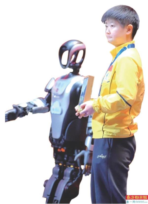 “夸父”亮相第34届乒乓球亚洲杯颁奖仪式,为中国健儿加油。受访者供图