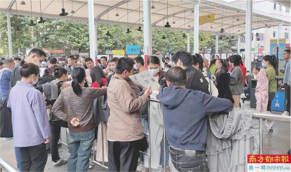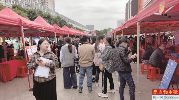 海珠康鹭片区招工现场,招工双方进行交流。 南都记者 吴文伟 摄