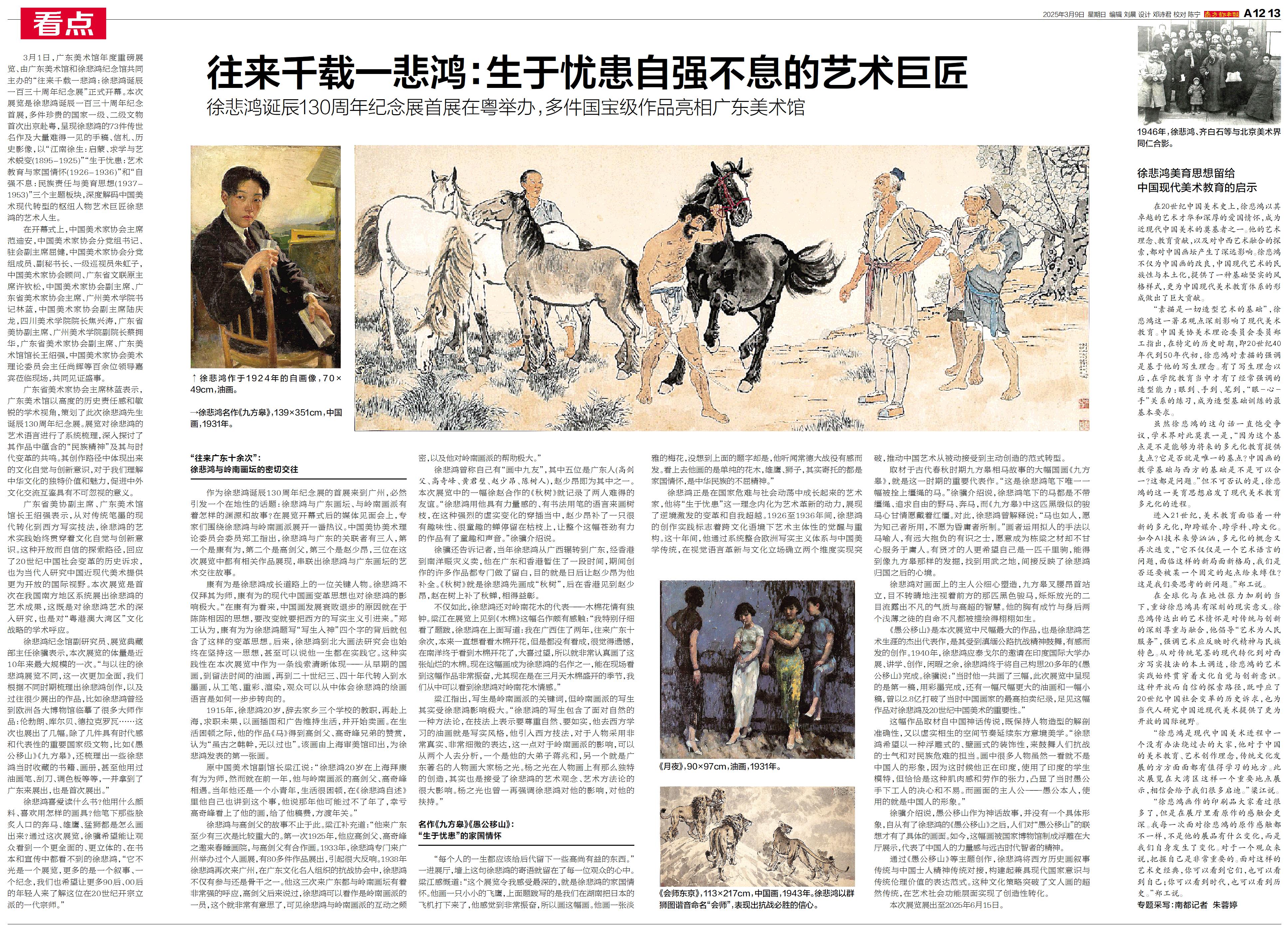3月1日,广东美术馆年度重磅展览、由广东美术馆和徐悲鸿纪念馆共同主办的“往来千载一悲鸿:徐悲鸿诞辰一百三十周年纪念展”正式开幕。