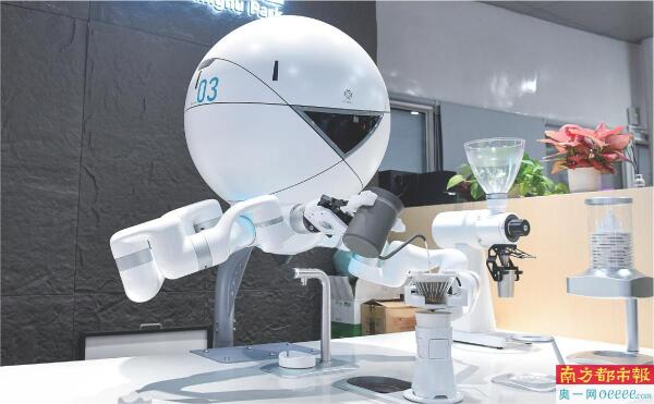 在深圳光明区一公园里,机器人正在制作咖啡。 新华社图片
