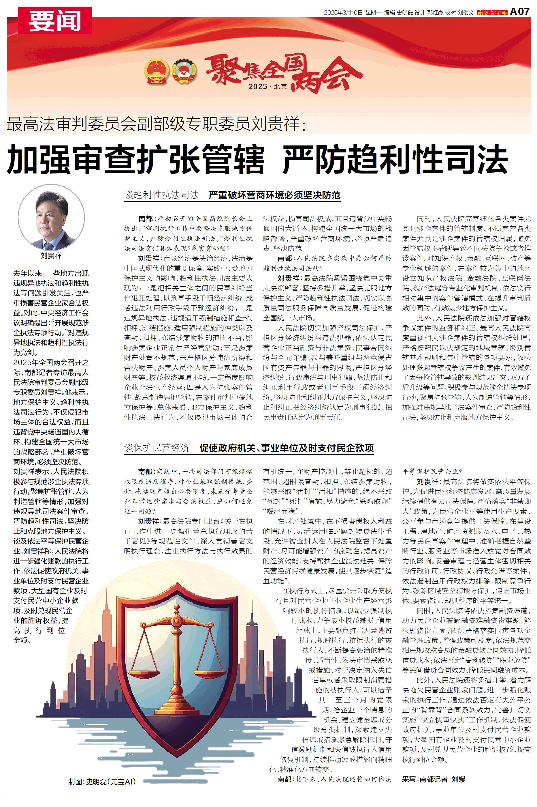 2025年全国两会召开之际,南都记者专访最高人民法院审判委员会副部级专职委员刘贵祥。