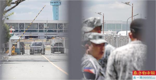 3月11日,在菲律宾大马尼拉地区的帕赛,士兵在杜特尔特被拘留地执勤。 新华社发