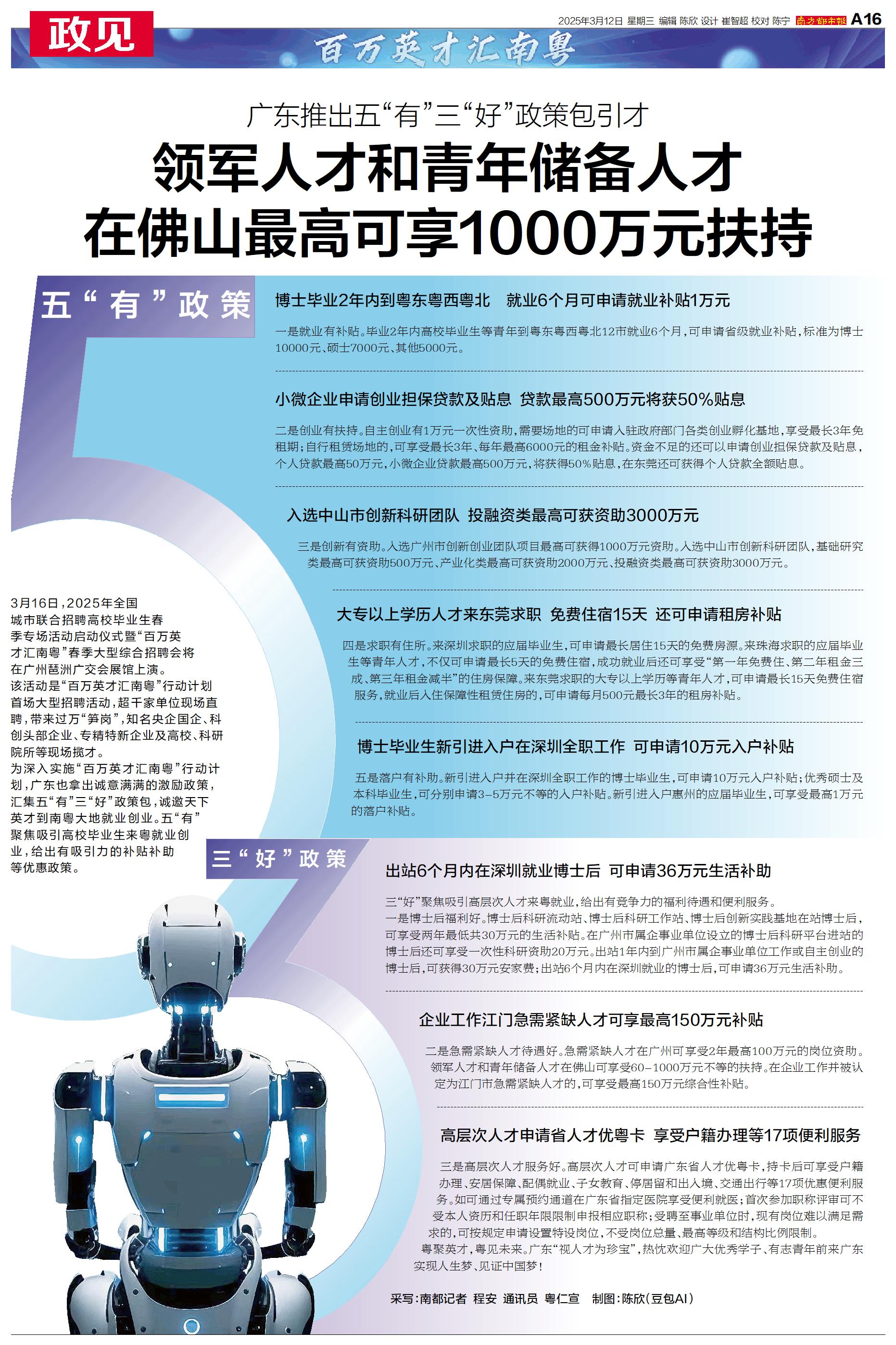 领军人才和青年储备人才在佛山最高可享1000万元扶持