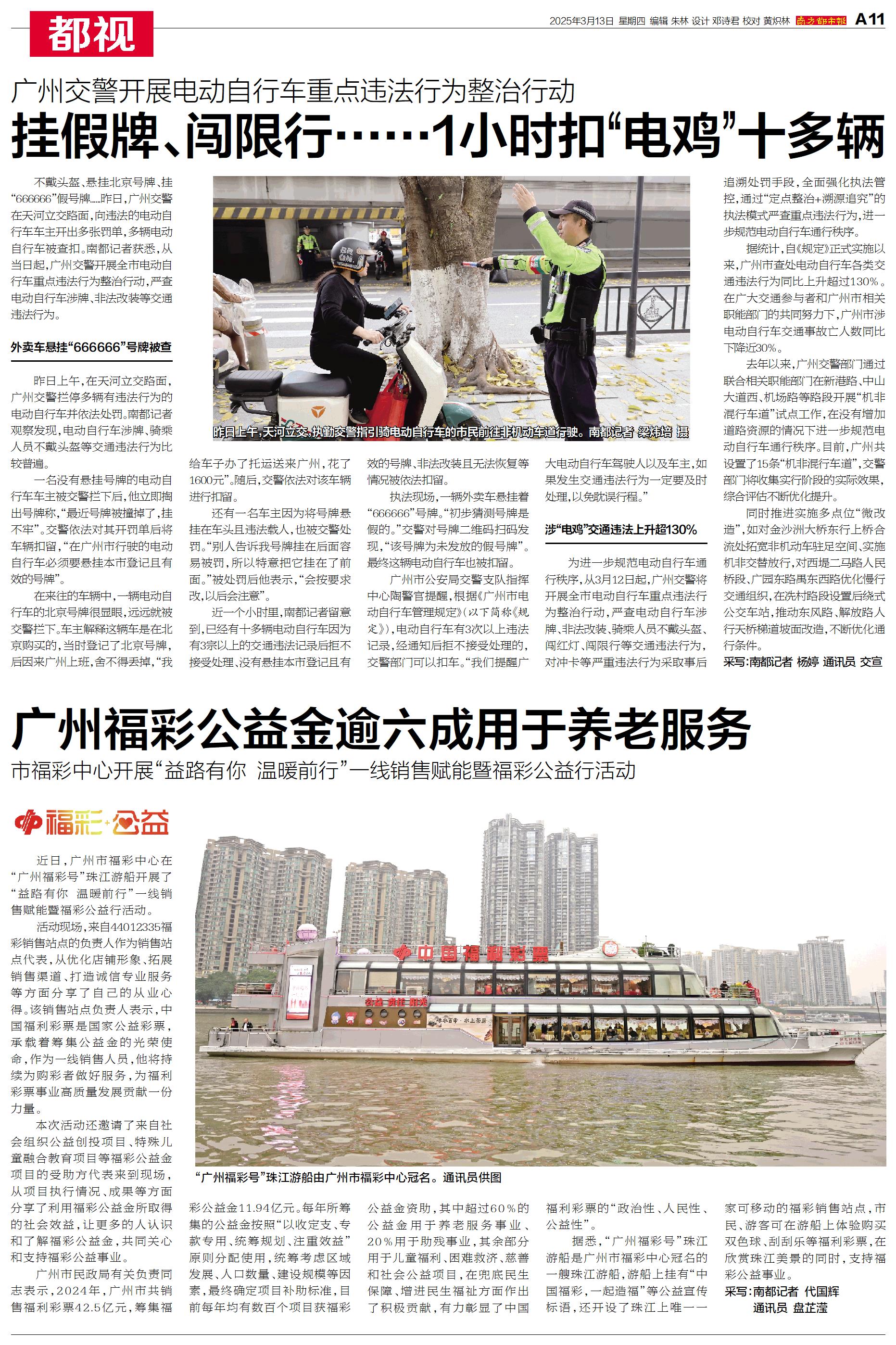 为进一步规范电动自行车通行秩序,从3月12日起,广州交警将开展全市电动自行车重点违法行为整治行动,严查电动自行车涉牌、非法改装、骑乘人员不戴头盔、闯红灯、闯限行等交通违法行为,对冲卡等严重违法行为采取事后追溯处罚手段,全面强化执法管控,通过“定点整治+溯源追究”的执法模式严查重点违法行为,进一步规范电动自行车通行秩序。