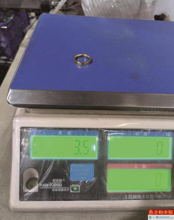 杨先生购买后回家称重才得知这只一口价金戒指仅重3.5克。