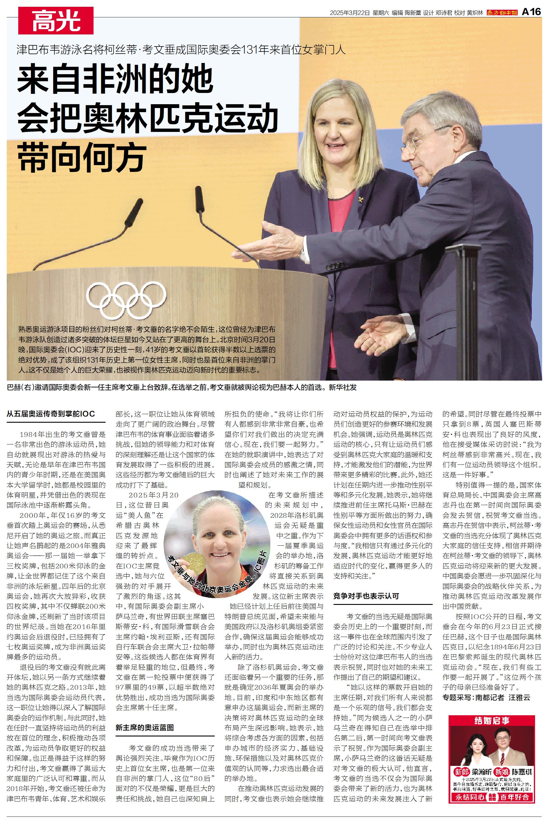 北京时间3月20日晚,41岁的考文垂以首轮获得半数以上选票的绝对优势,成了该组织131年历史上第一位女性主席。