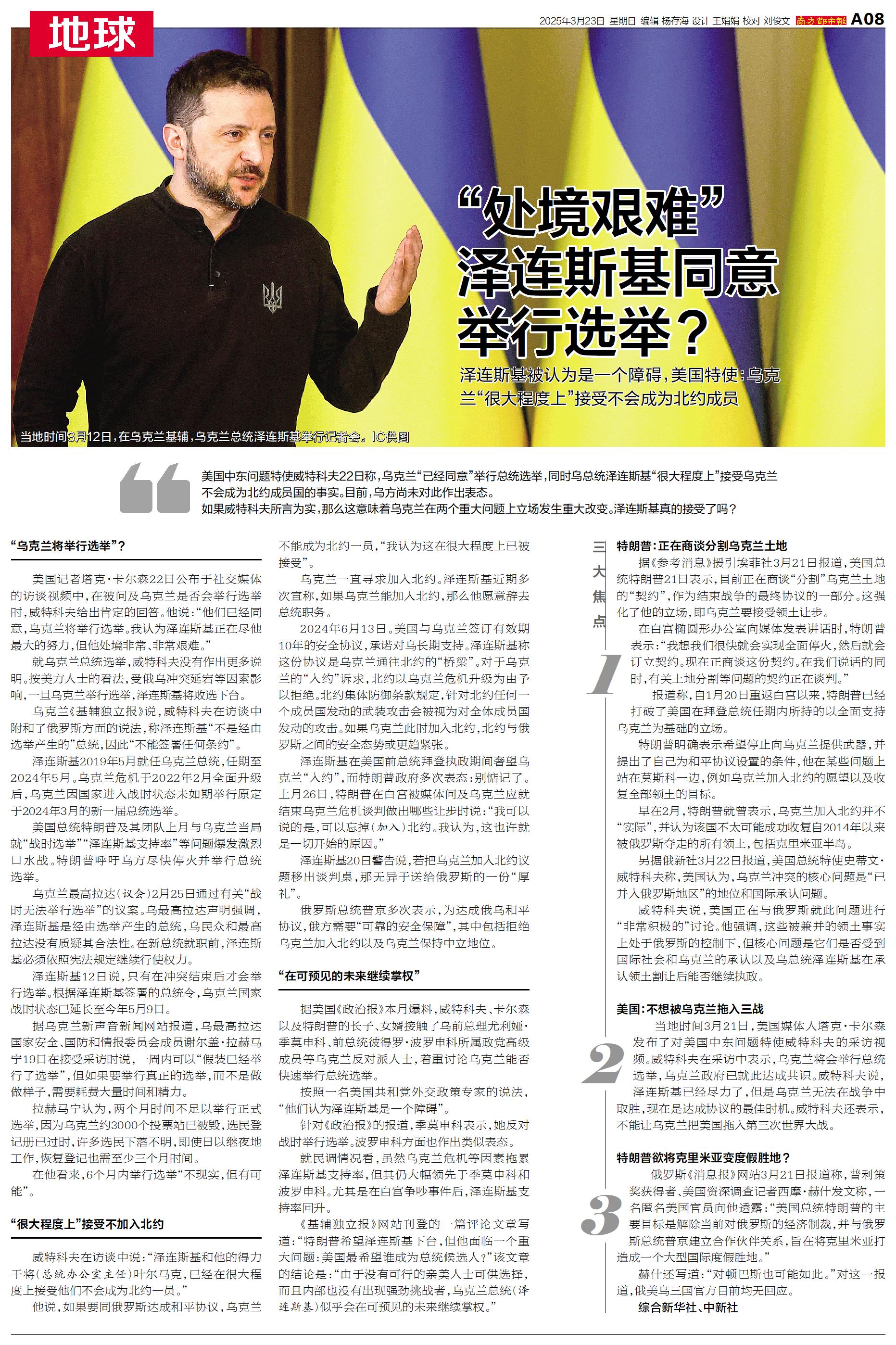 美国中东问题特使威特科夫22日称,乌克兰“已经同意”举行总统选举,同时乌总统泽连斯基“很大程度上”接受乌克兰不会成为北约成员国的事实。