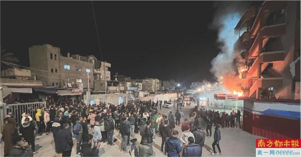3月23日,人们聚集在遭袭的加沙地带纳赛尔医院。 新华社发