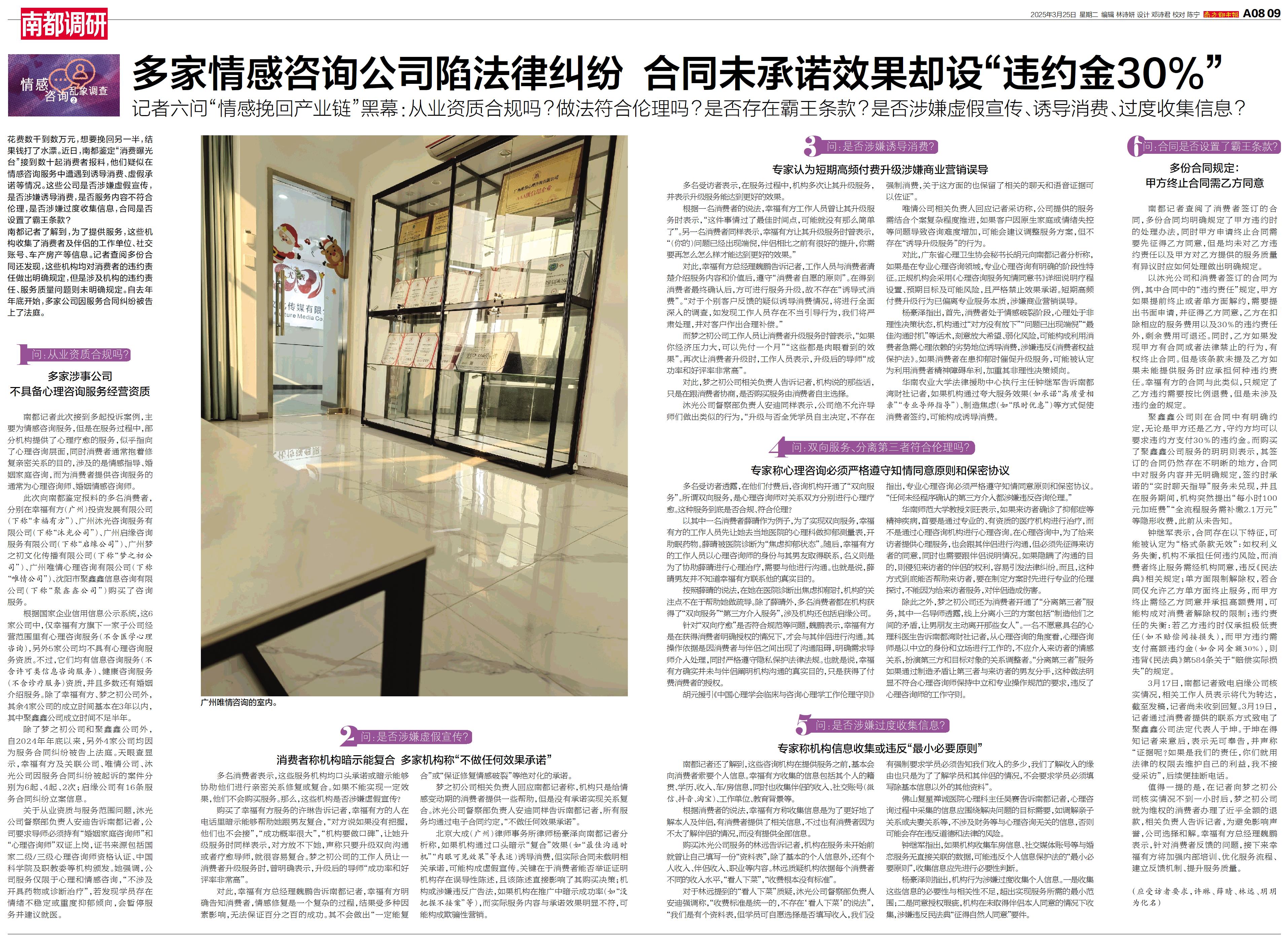 多家情感咨询公司陷法律纠纷 合同未承诺效果却设“违约金30%”