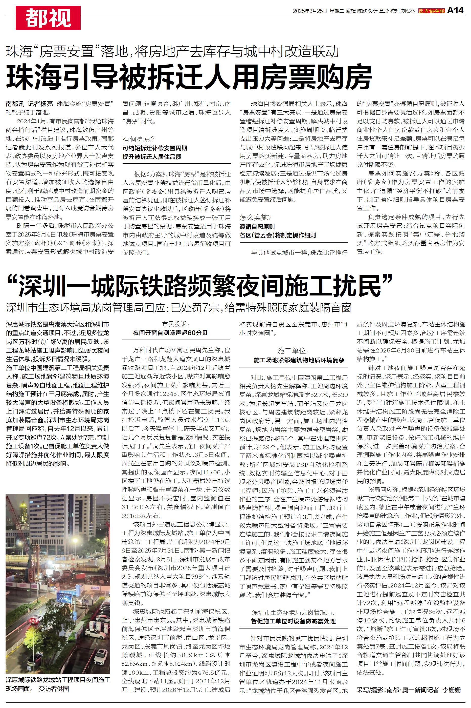 深惠城际铁路是粤港澳大湾区和深圳市的重点轨道交通项目,不过,近期多位龙岗区万科时代广场V寓的居民反映,该工程龙城站施工噪声影响周边居民夜间生活休息,投诉多日情况未缓解。