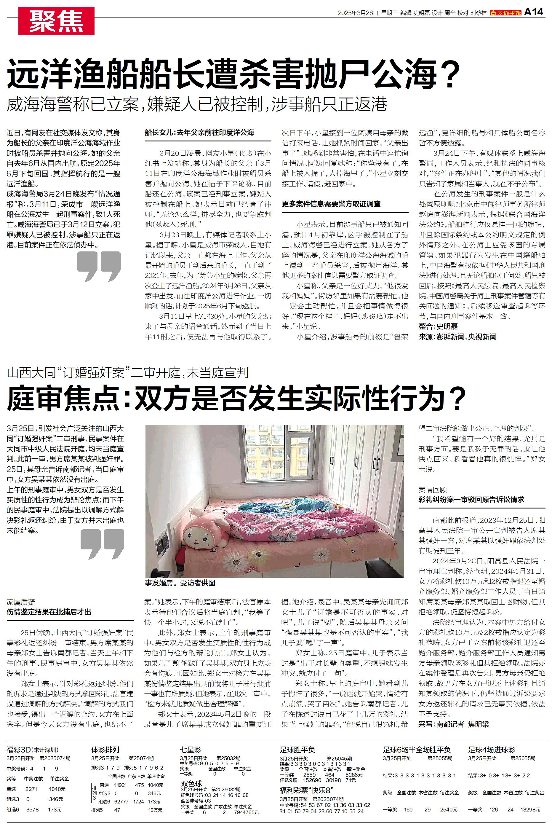 25日傍晚,山西大同“订婚强奸案”民事彩礼返还纠纷二审结束,男方席某某的母亲郑女士告诉南都记者,当天上午和下午的刑事、民事庭审中,女方吴某某依然没有出庭。