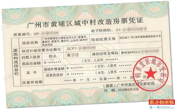 广州市黄埔区城中村改造房票凭证示图。 资料图