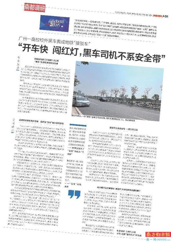 3月28日,南都A08版对白云学院校外黑车泛滥一事进行报道。