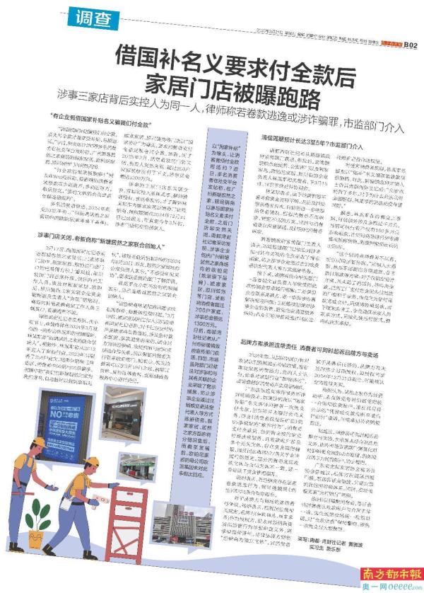 3月21日,南都湾区财经叠B02版曾对“新塘居然之家经销商涉嫌跑路风波”一事进行报道。