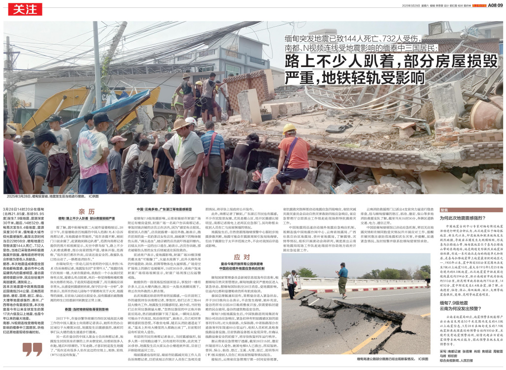 3月28日14时20分在缅甸(北纬21.85度,东经95.95度)发生7.9级地震,震源深度30千米。