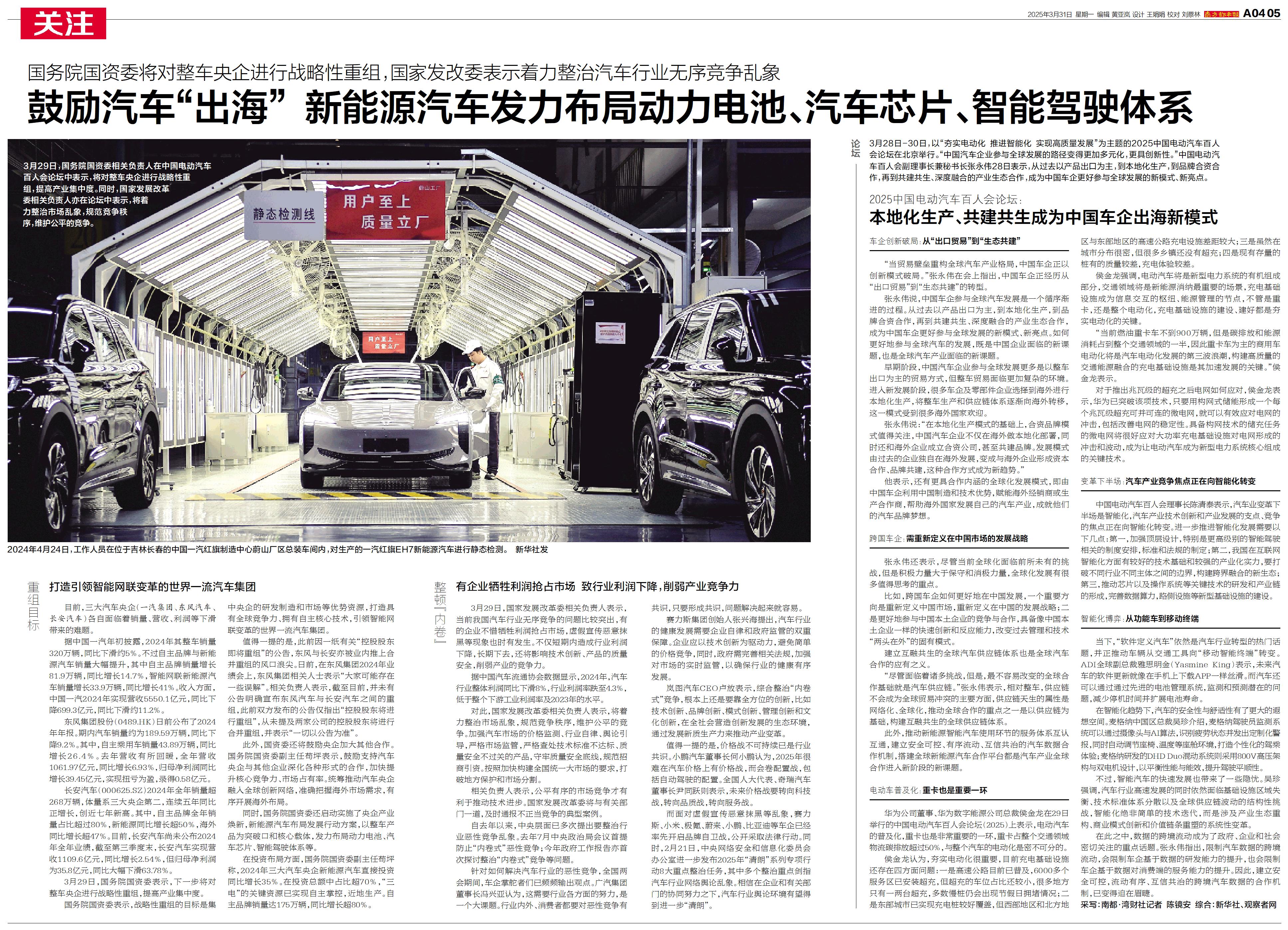 此外,国资委还将鼓励央企加大其他合作。国务院国资委副主任苟坪表示,鼓励支持汽车央企与其他企业深化各种形式的合作,加快提升核心竞争力、市场占有率。统筹推动汽车央企融入全球创新网络,准确把握海外市场需求,有序开展海外布局。