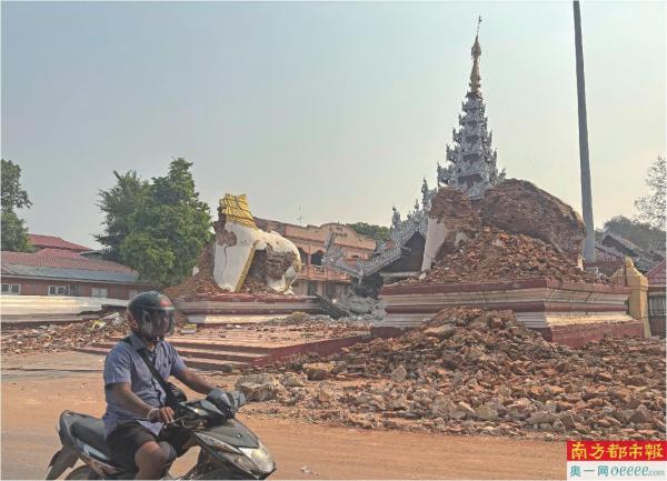 3月30日,南都记者获悉,据缅甸“民族团结政府”统计数据,当地已有超95座佛塔、超50座寺庙建筑在地震中损毁。目击者发布的视频和图片显示,大量寺庙的金色尖顶断裂,墙壁倒塌,还有佛像在地震中损毁,当地僧侣在较为空旷的街边露宿。