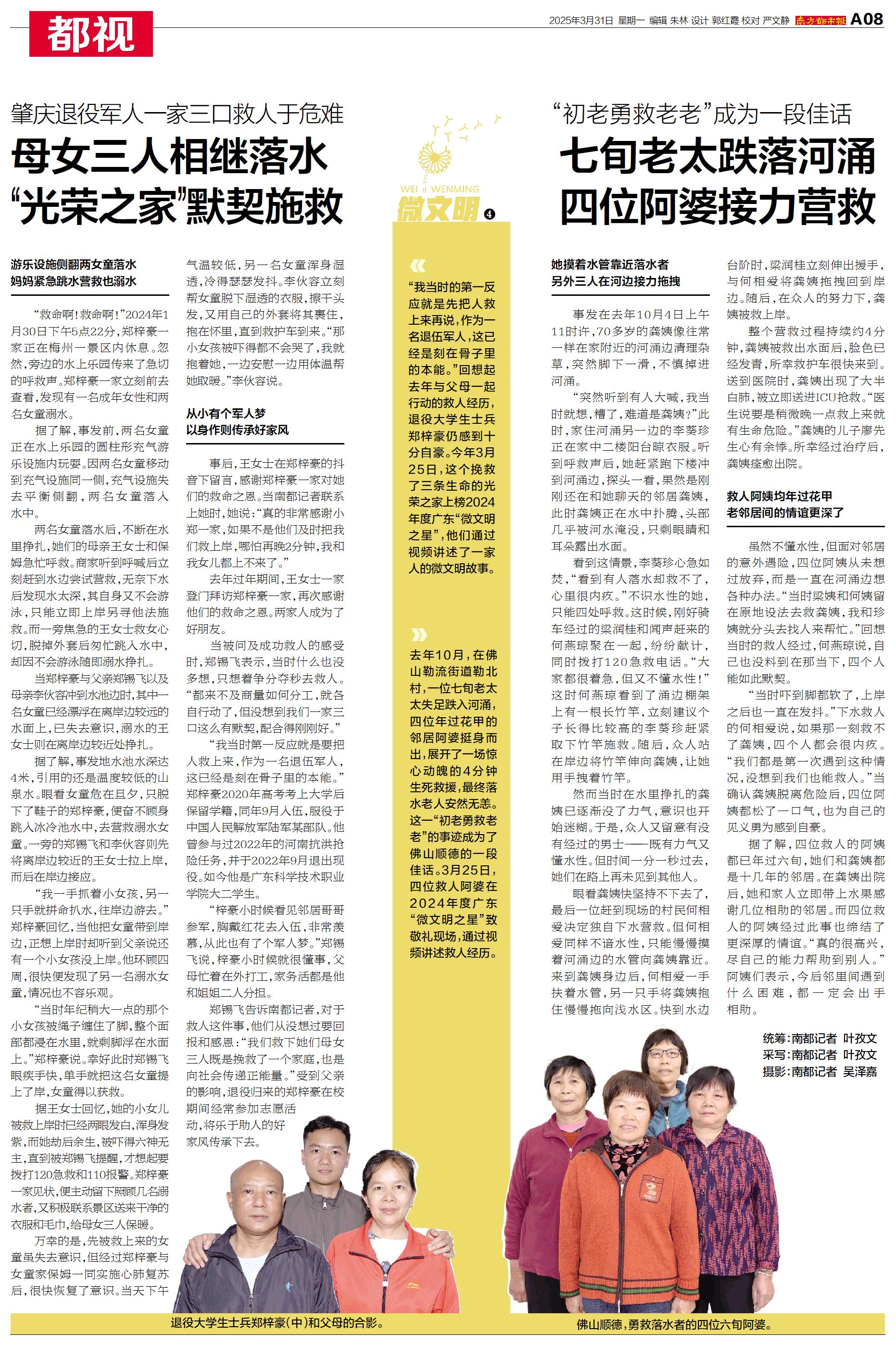 去年10月,在佛山勒流街道勒北村,一位七旬老太太失足跌入河涌,四位年过花甲的邻居阿婆挺身而出,展开了一场惊心动魄的4分钟生死救援,最终落水老人安然无恙。