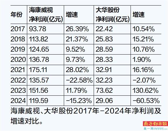 回顾过去十年,两家公司你追我赶,形成了国内安防行业的“双雄格局”,但近年来,随着行业增速放缓叠加市场需求饱和,大华股份与海康威视的差距也逐渐拉大。