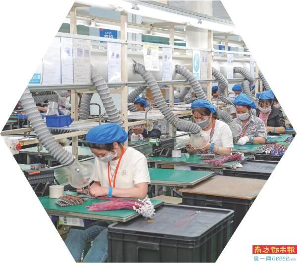 德馨童娱澄海工厂的生产车间内,工人正组装玩具产品。