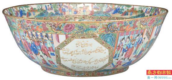 广彩波斯文铭文人物故事图大碗。