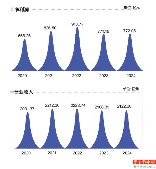 这一年,其营收和净利润稳住了。虽然增速微乎其微,净利润距离2022年的913.77亿元仍有超百亿元的差距,但下滑态势止住了。