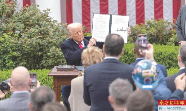 4月2日,美国总统特朗普在首都华盛顿白宫展示签署后的关于所谓“对等关税”的行政令。 新华社供图