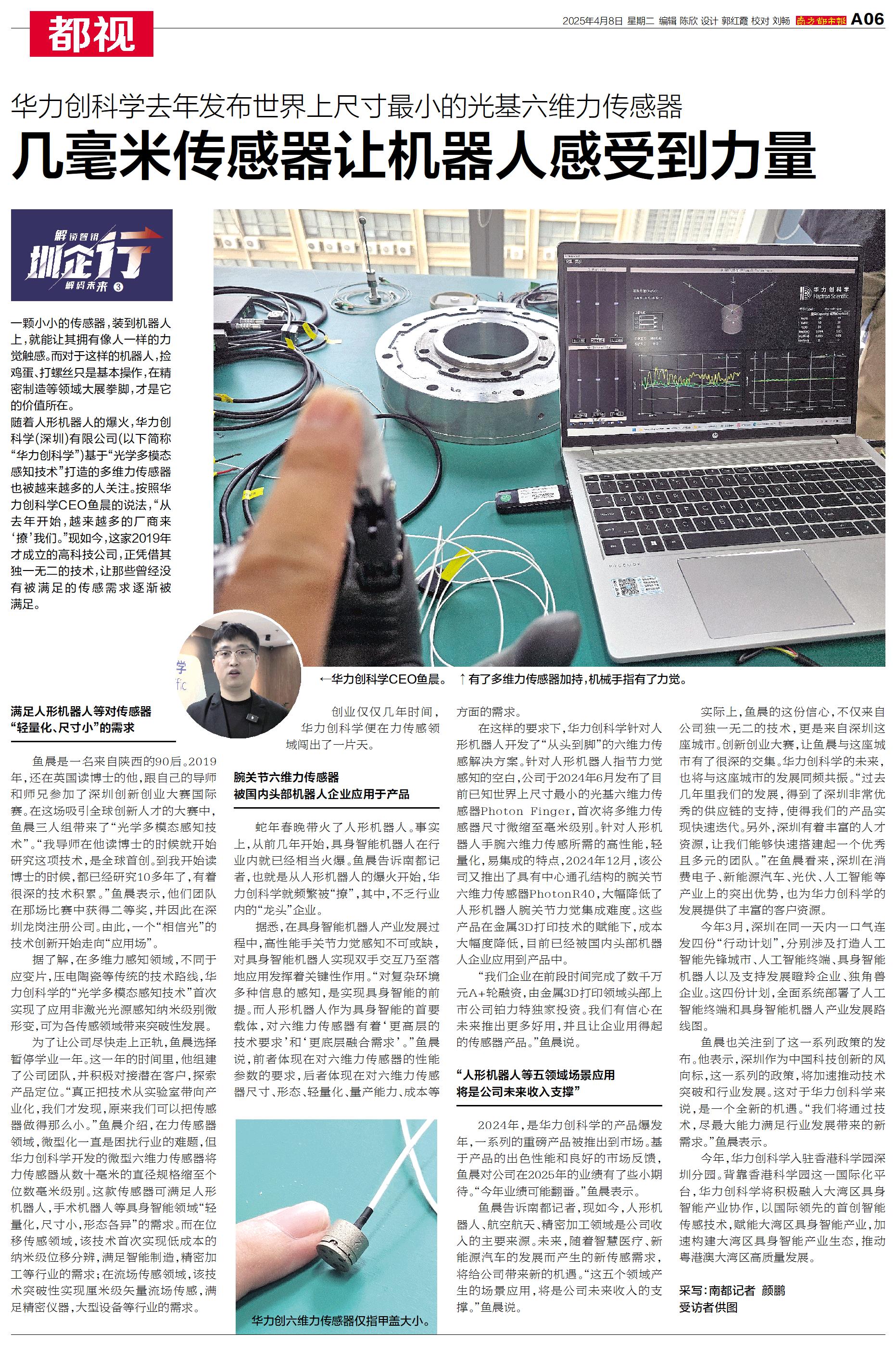 几毫米传感器让机器人感受到力量