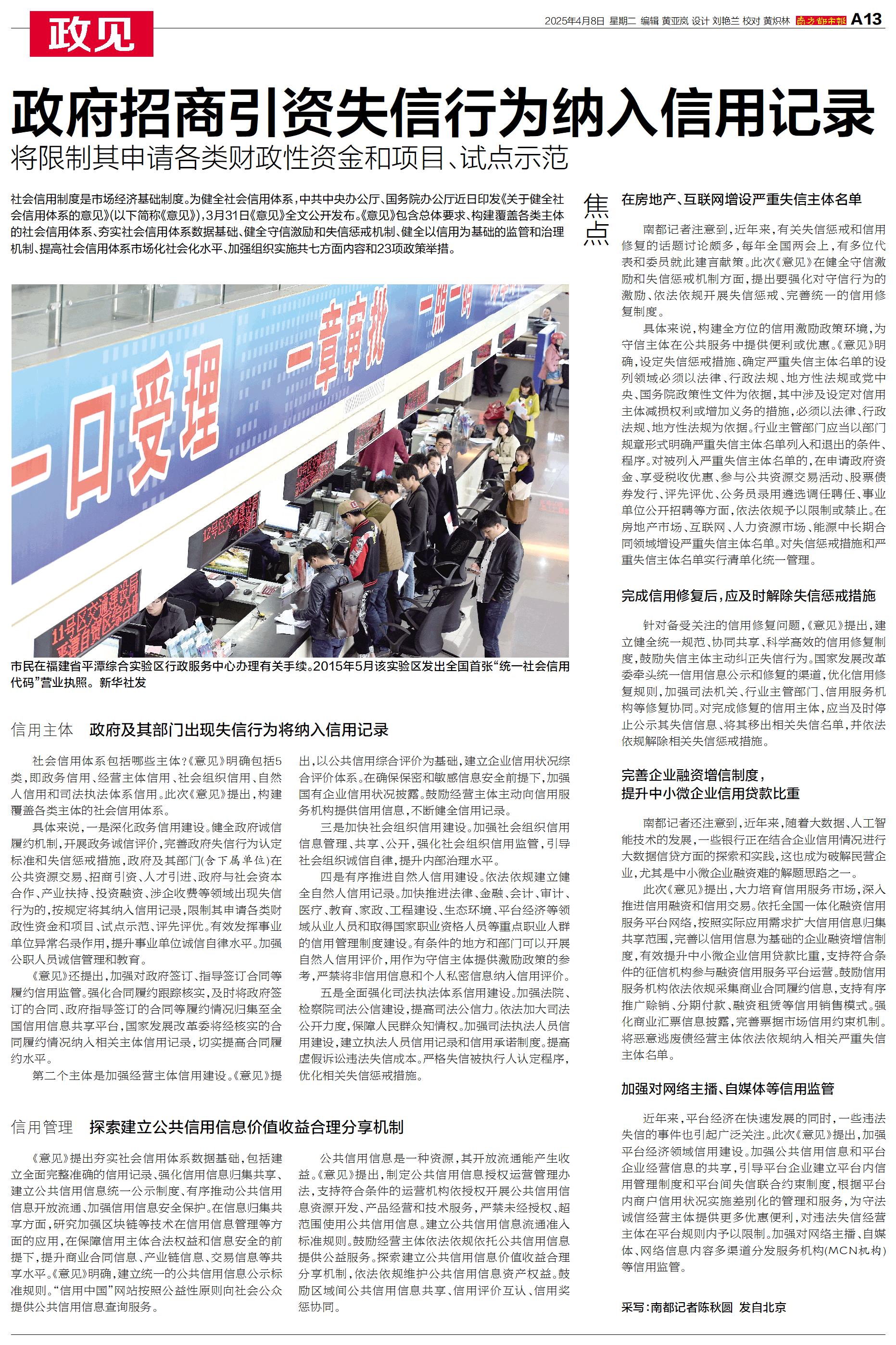为健全社会信用体系,中共中央办公厅、国务院办公厅近日印发《关于健全社会信用体系的意见》,3月31日《意见》全文公开发布。
