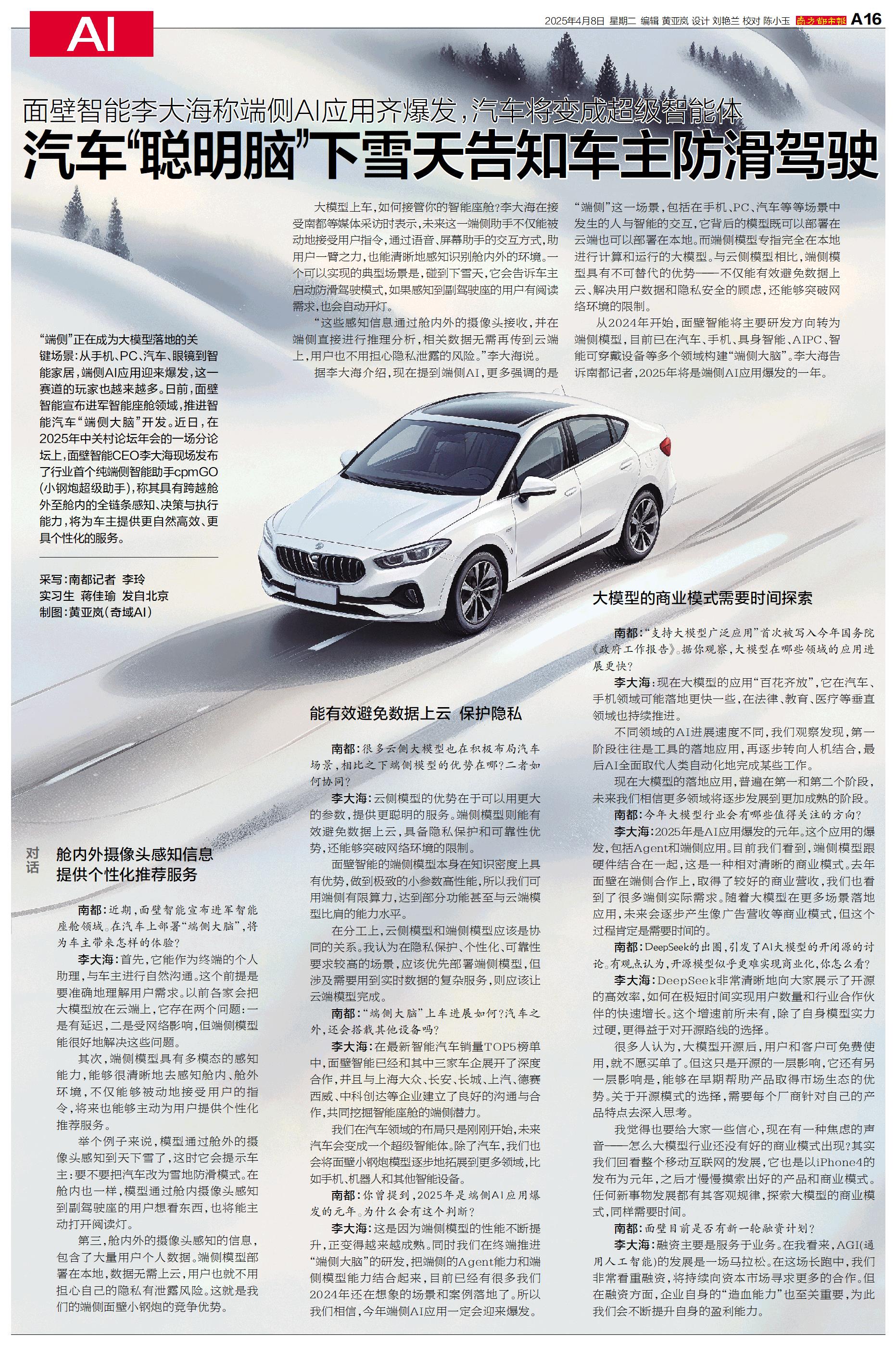 汽车“聪明脑”下雪天告知车主防滑驾驶