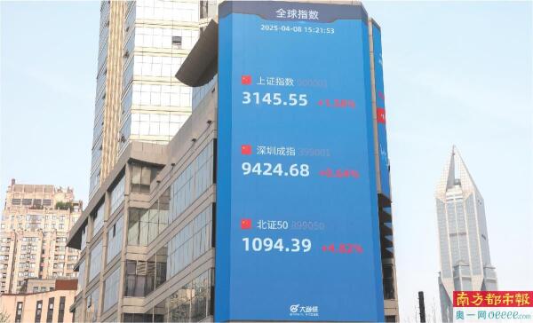 4月8日,上海街头大屏显示股市行情。 IC供图