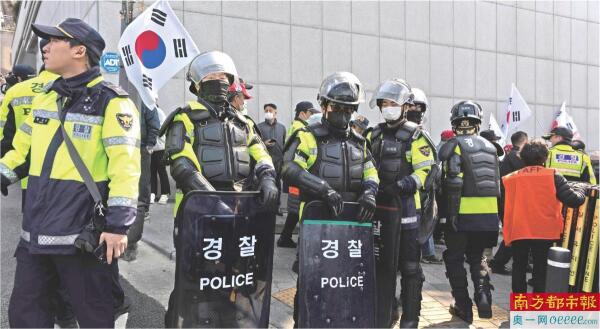 4月4日,警察在韩国首都首尔的总统官邸附近警戒。 新华社发
