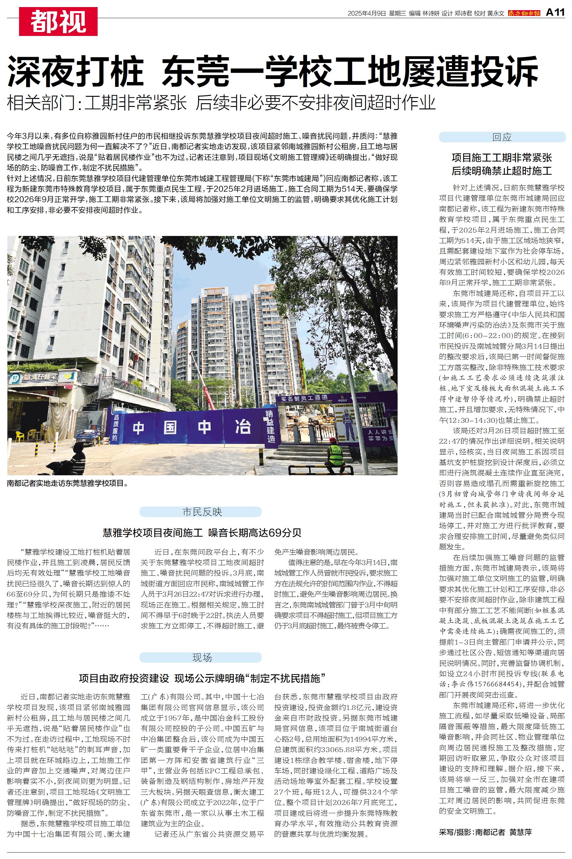 深夜打桩 东莞一学校工地屡遭投诉