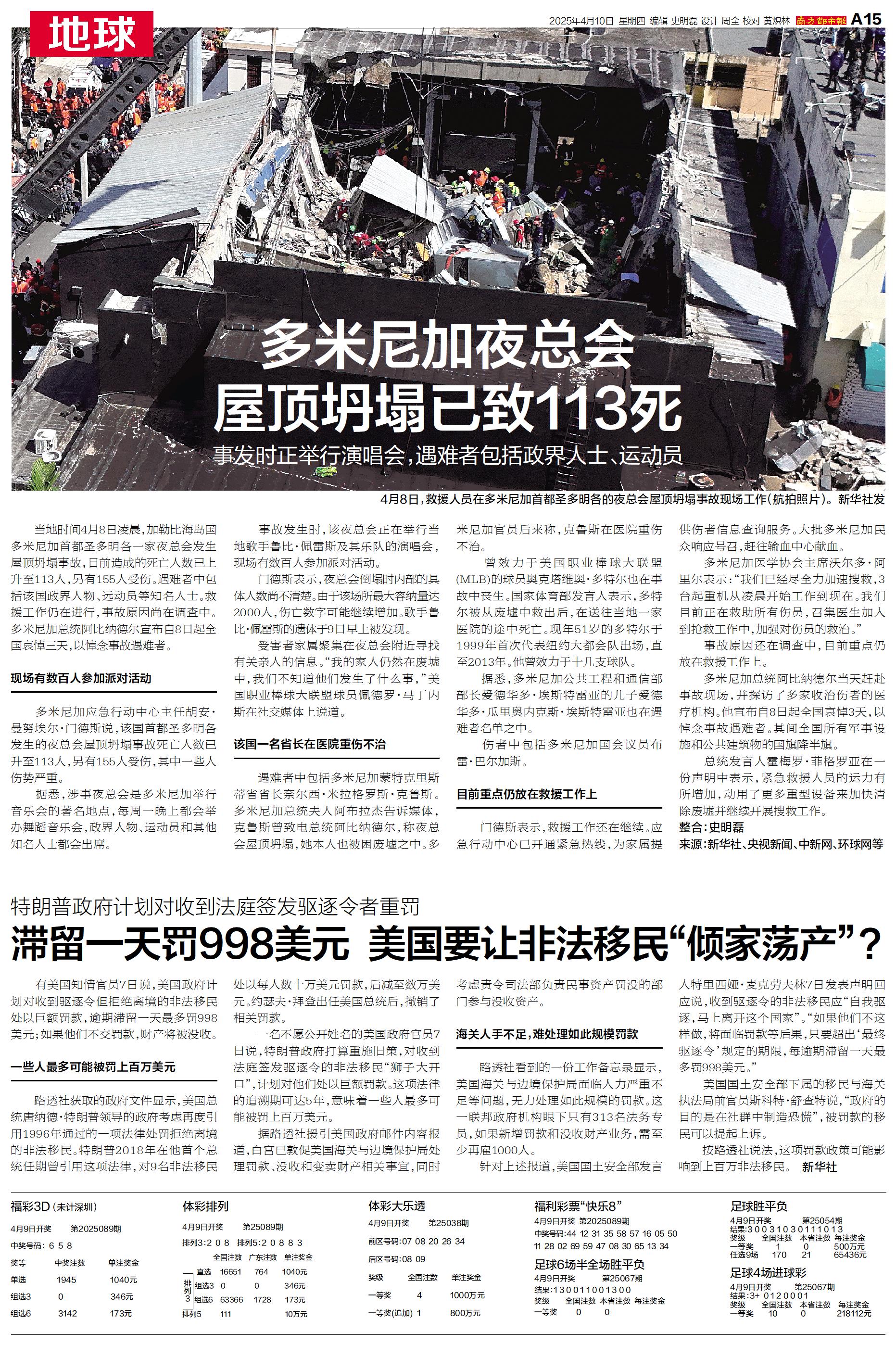 当地时间4月8日凌晨,加勒比海岛国多米尼加首都圣多明各一家夜总会发生屋顶坍塌事故,目前造成的死亡人数已上升至113人,另有155人受伤。