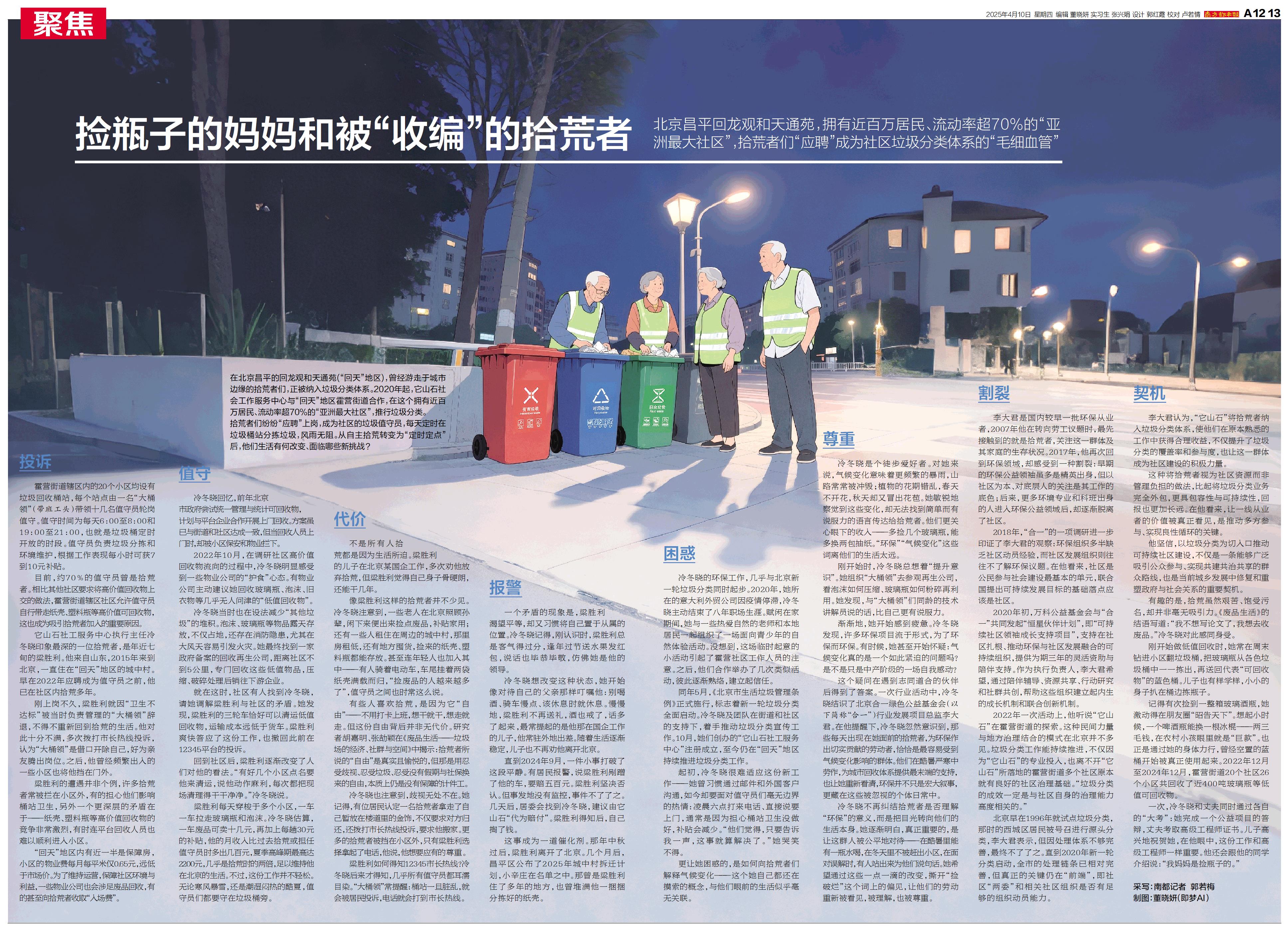 在北京昌平的回龙观和天通苑(“回天”地区),曾经游走于城市边缘的拾荒者们,正被纳入垃圾分类体系。